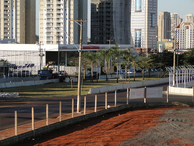 Fizemos algumas fotos no degrau mais alto da arquibancada PB2, aonde dá para se ter uma noção da visão que (não) teremos da pista, confira: